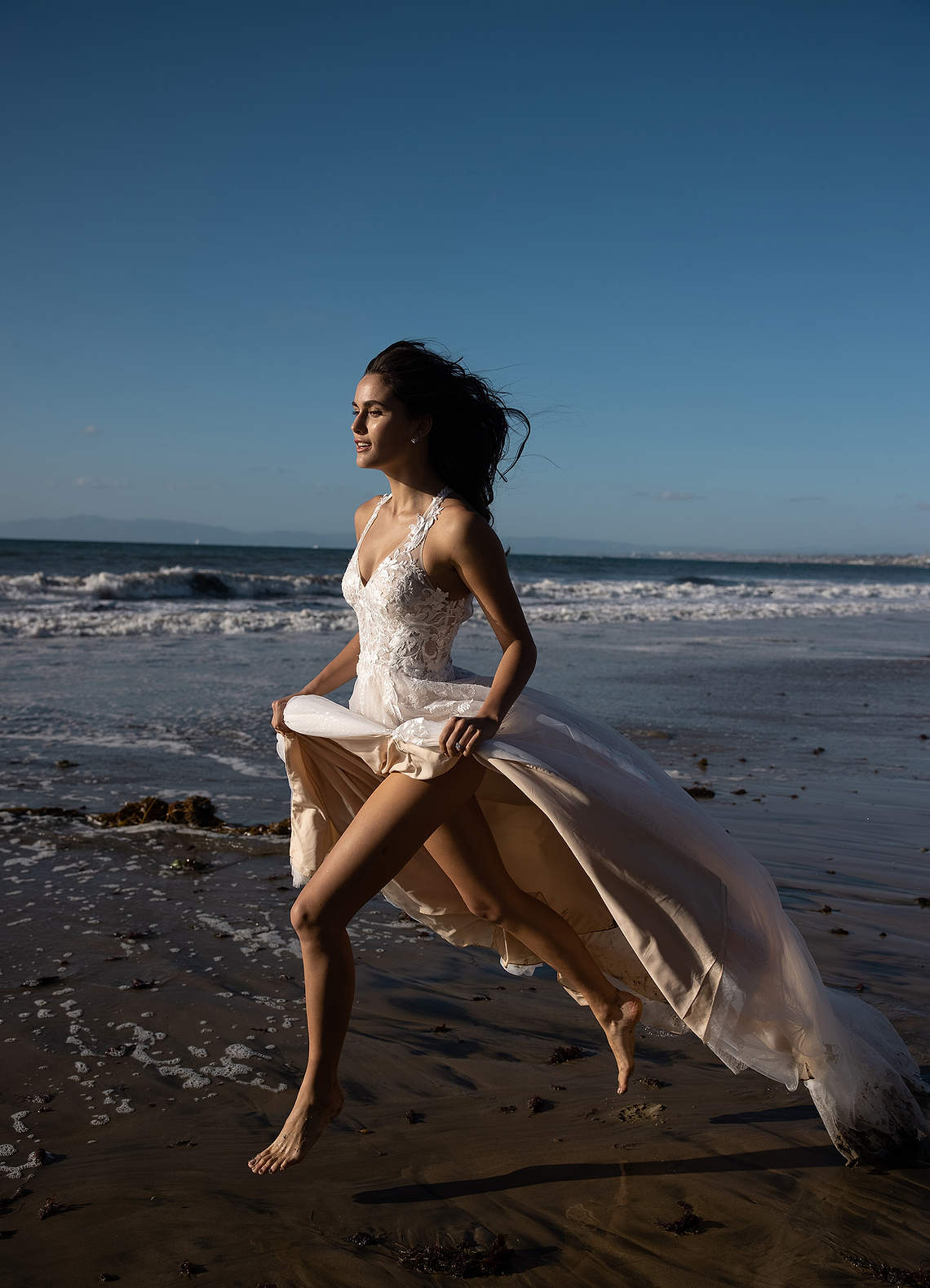 Let your day be perfect with our dazzling and light-catching A-line gown, Dysis. Her illusion halter neckline is adorned with hand sewn lace that drapes around the neck and onto her keyhole back. Buttons are sewn down the zipper and the A-line skirt has floral lace appliques that cascade down the chapel train.