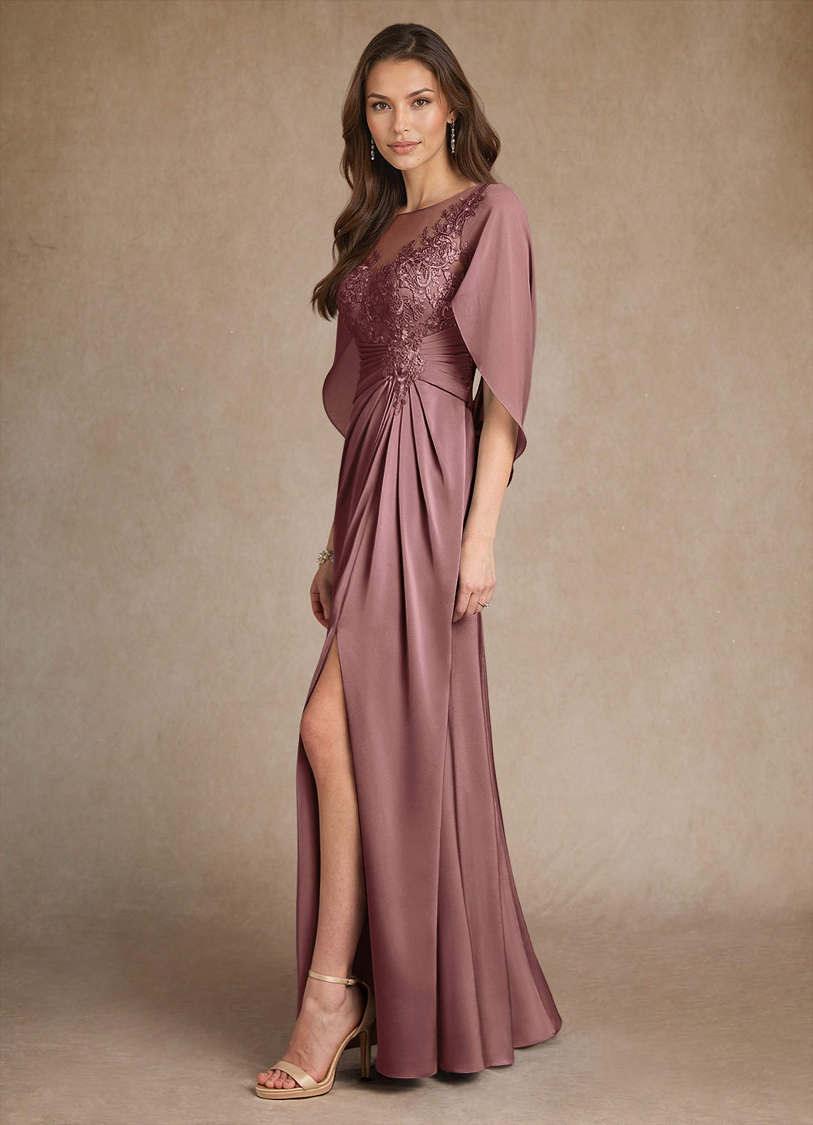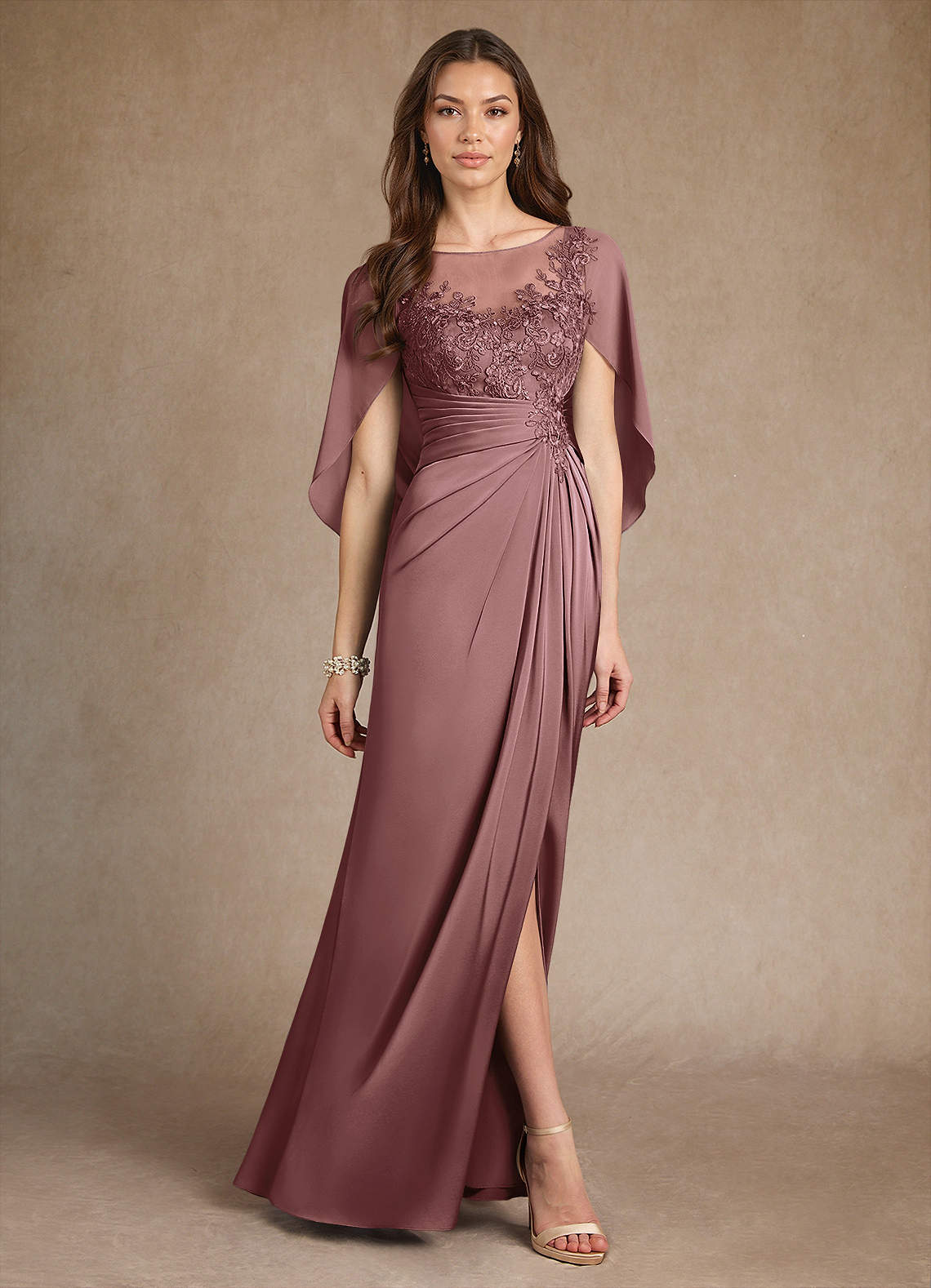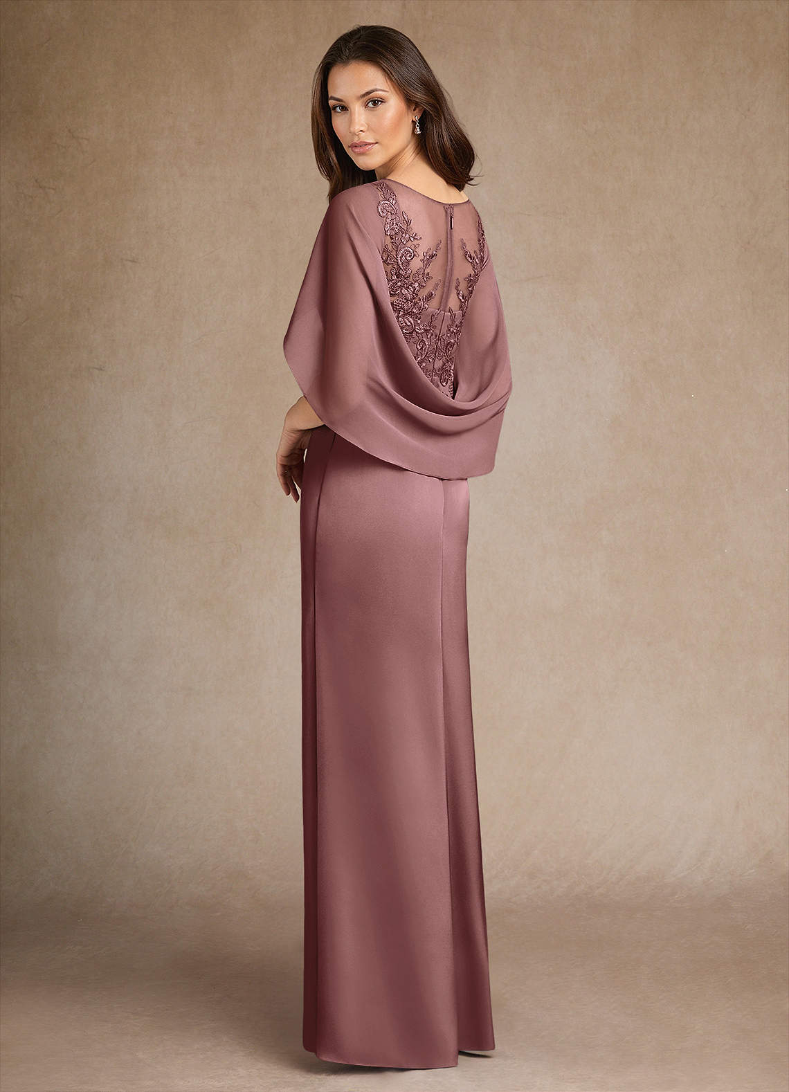 Découvrez Hera, notre magnifique modèle en satin extensible. Elle associe un col bateau illusion en mousseline de soie se transformant en cape dans le dos, des détails en dentelle placés à la main sur le corsage et une superbe jupe plissée longue jusqu'au sol. Portez ce modèle pour une célébration de mariage ou votre prochaine occasion spéciale.
