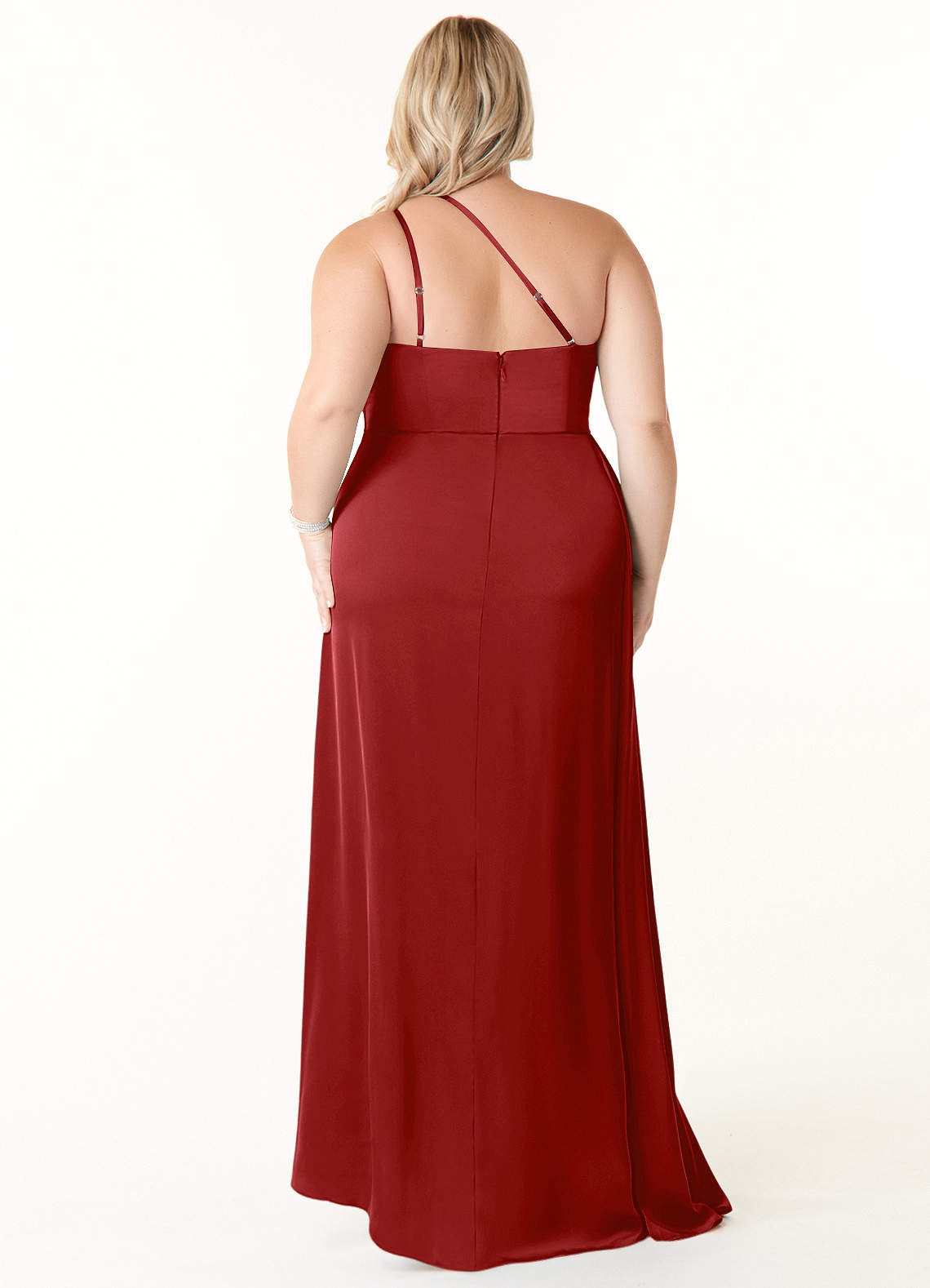 Maron is our stunning bridesmaid dress cut from stretch satin. She features an asymmetrical neckline with double spaghetti straps. The look is complete with a pleated sheath skirt and leg slit.The design of the hook on the straps has been upgraded since DEC 23rd ,2022
