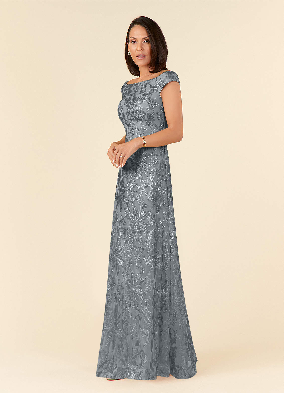 Porcelain is a floor length, off the shoulder, a-line gown. The dress is cut in all over sequin floral lace. This dress is simple, elegant and oozing with class. She's a perfect pick for any fine event or celebration.